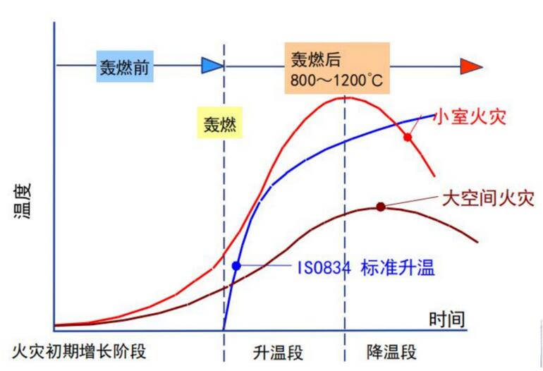 钢结构应按结构耐火承载力极限状态进行耐火验算与防火设计。此处的钢结构,包括工业与民用建筑中的钢结构以及钢管混凝土柱、压型钢板-混凝土组合楼板、钢与混凝土组合梁等组合结构。随着温度的升高, 钢材的弹性模量急剧下降,钢材的强度会随着钢结构温度的升高而下降,其承载力也随之下降(下图为钢结构升温曲线)。因此,为保证钢结构在设计耐火极限时间内的承载安全,必须进行承载力极限状态验算。由于直接涉及建筑的结构安全,将本条作为规范的强制性条文。